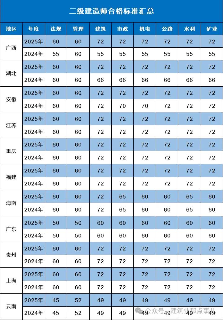 结果同样是二建证,含金量可能差不少。有些地方实务仅需49分即可合格,而很多的地方则要求72分,同一考试标准下分差高达23分,这中间的差距摆在这儿。